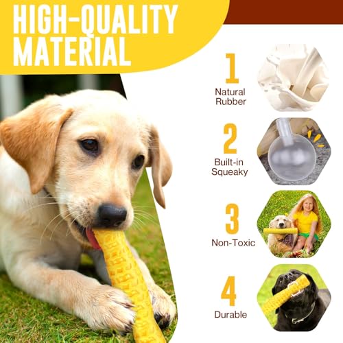 LOYEE Dog Squeaky Toys Interactive Dog Toys for Aggressive Chewers Tough Rubber Chew Toys for Medium/Large Breed, Indestructible Puppy Chew Toys for Teething (Yellow)