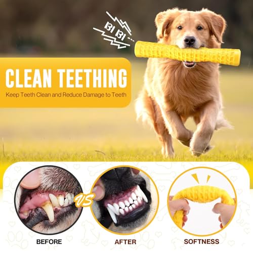 🐶【Help Dog Grow】The textured surface of the dog stick helps promote dental health by massaging your dog’s gums and cleaning their teeth as they chew and play. The dog stick features a built-in squeaker that emits an enticing sound, capturing your dog’s attention and keeping them engaged during playtime.