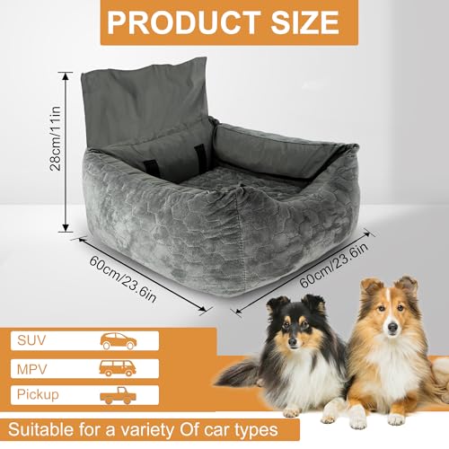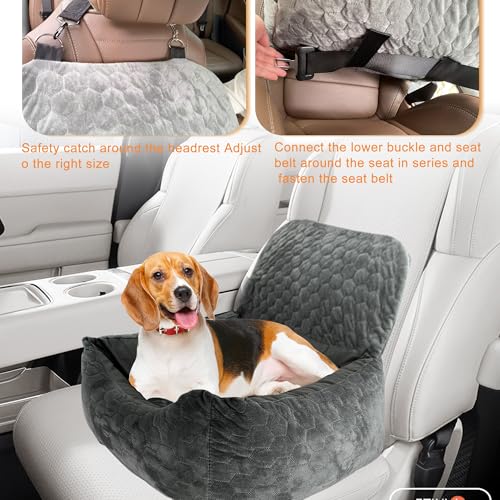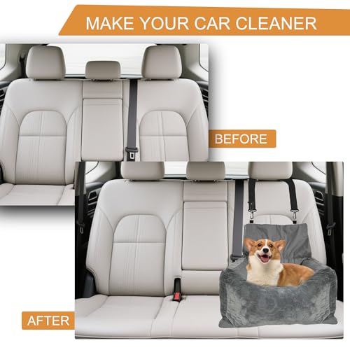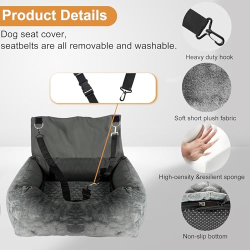 Special Dog Car Seat for Pet Dogs, Super Soft Fabric and Memory Foam Pet Travel Chair, Washable and Removable, Non-Slip Bottom, Durable and Convenient Safety Strap (Gray)