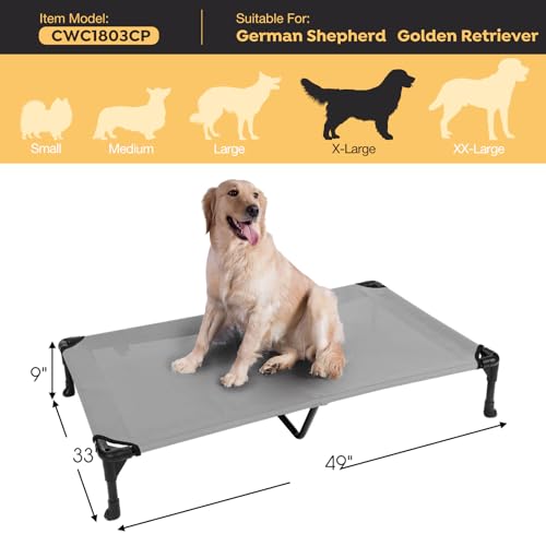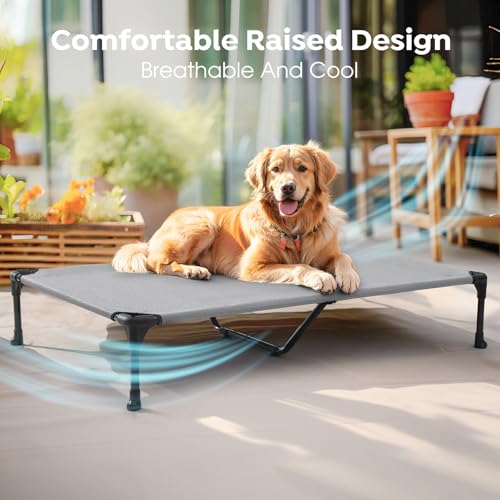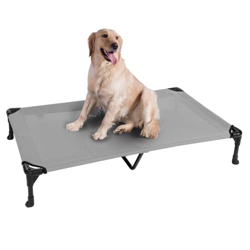 Veehoo Outdoor Elevated Dog Bed Large Sized Dogs, XL Cooling Raised Dog Cots Beds Training Platform Off Ground Hammock with Breathable Mesh, No-Slip Feet, 49″x33″, Grey