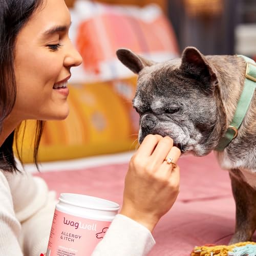 WagWell Allergy and Itch Chews – Chicken Flavored – Plant Based with Colostrum and Spirulina – Dog Skin and Coat Supplement for Itch Relief and Digestive Health, 60 Chews